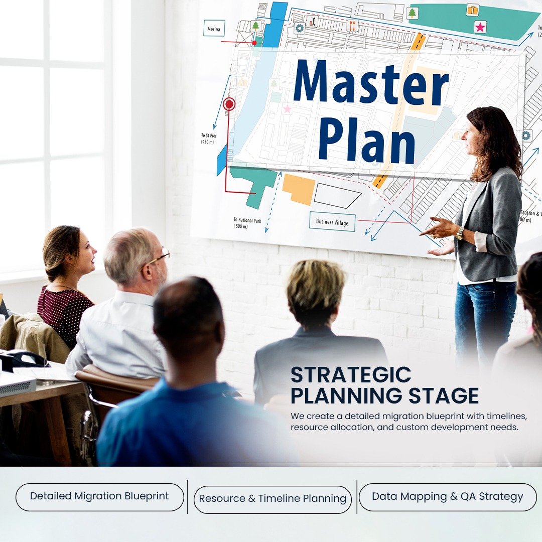 We create a detailed migration blueprint with timelines, resource allocation, and custom development needs. Every aspect - from data mapping to QA testing - is carefully documented.